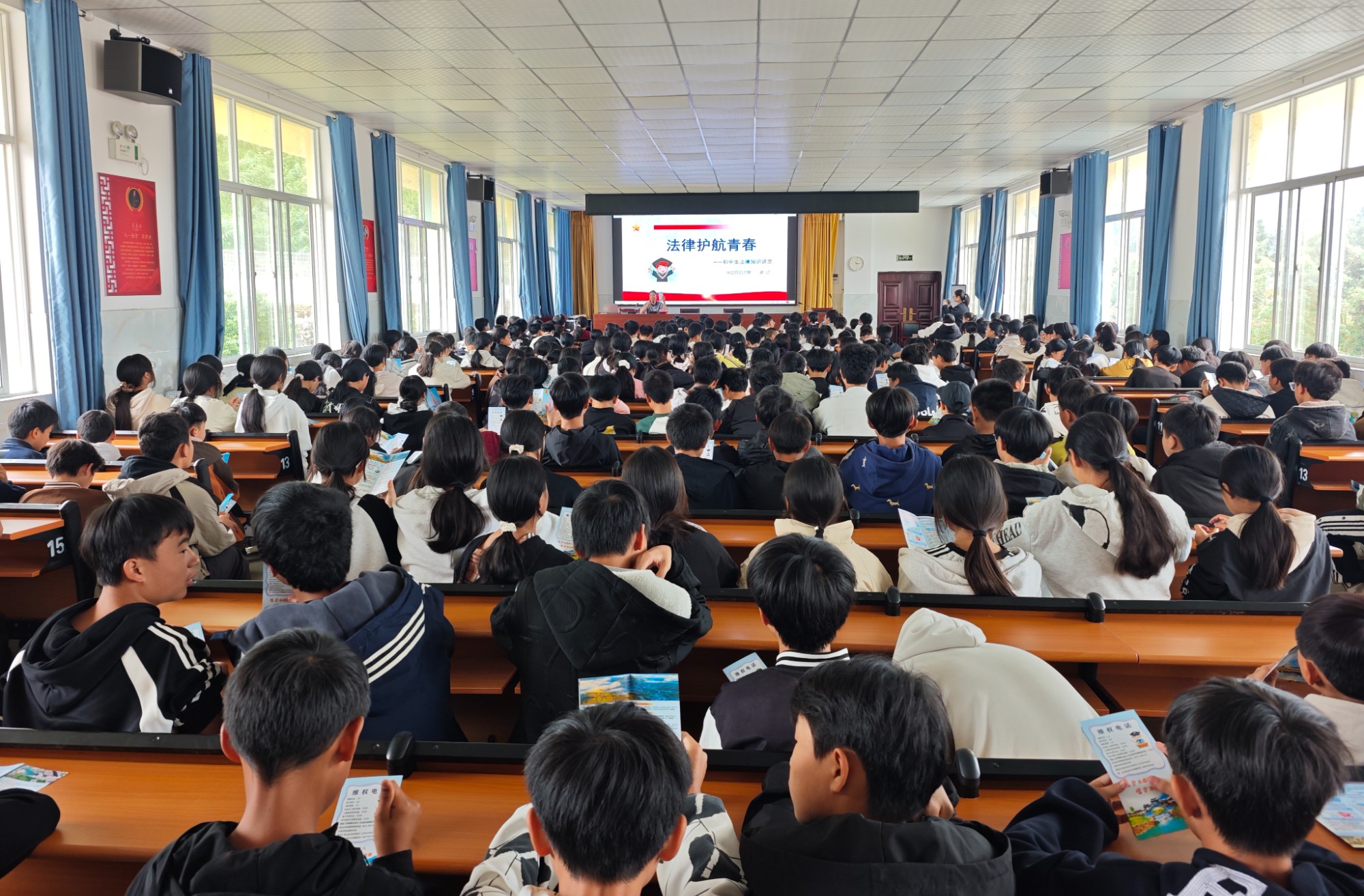 整场活动气氛活跃,同学们认真聆听,积极参与互动。讲座结束后,还向学校师生赠送了精心编制的《未成年人自我保护手册》300余份、宪法读本30余本、普法纪念品90余份。同学们纷纷表示,此次普法活动贴近生活、通俗易懂,让他们对法律有了更直观、更深刻的认识,明白了在日常生活中要明辨是非、规范言行,争做尊法、学法、守法、用法的新时代好青年。