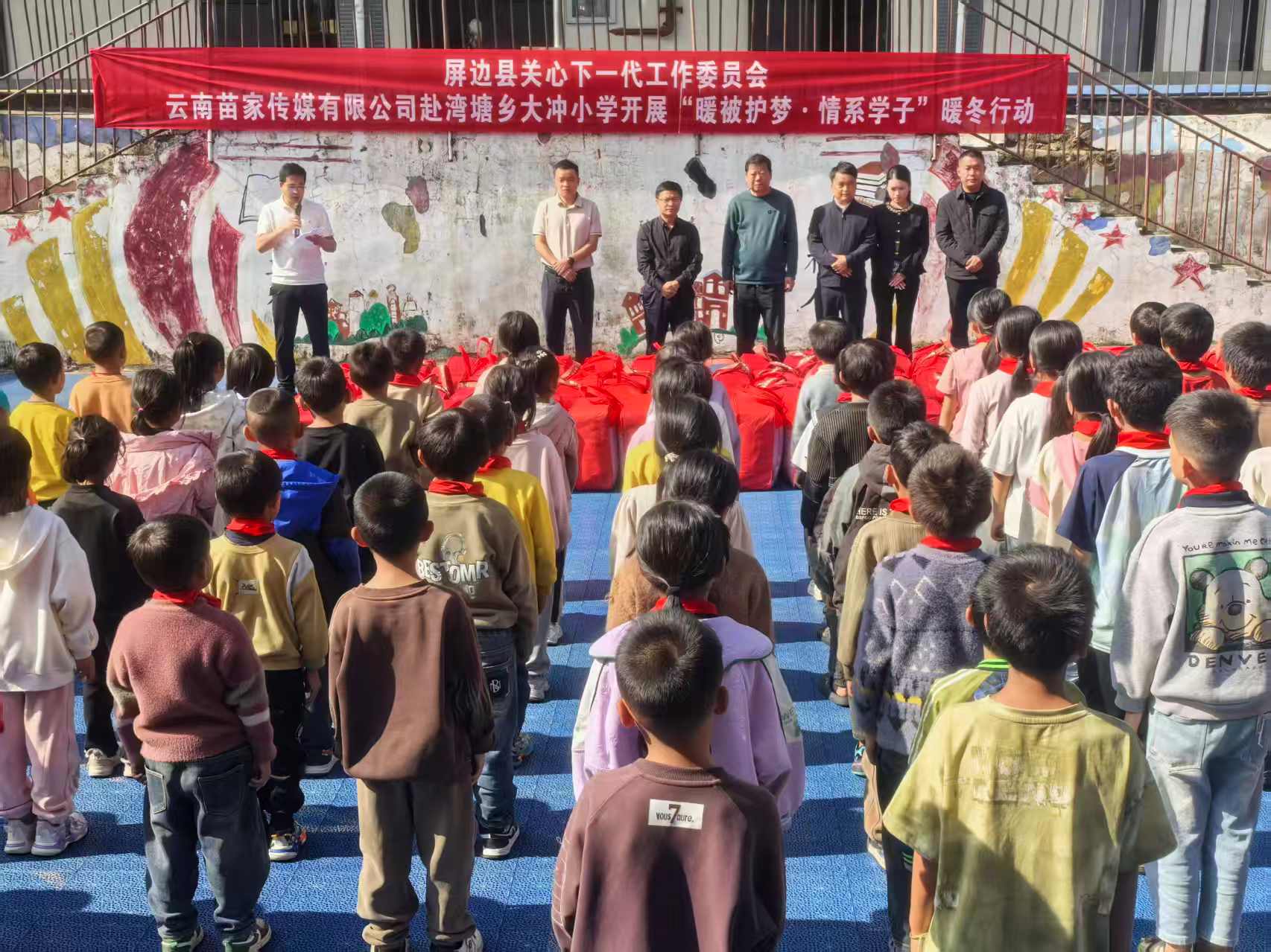 冬日虽寒,暖意盈校。11月14日,一场充满温情的“暖被护梦·情系学子”爱心捐赠仪式在屏边县湾塘中心学校大冲小学热烈举行。校园内爱意流淌,为莘莘学子带来了物质与精神的双重滋养。