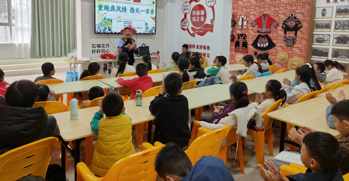 伙伴计划 |蒙自市明德社区伙伴领航站“青春调色板”七彩成长课堂-“童趣彝风绣 指尖一家亲”彝族刺绣非遗文化体验活动